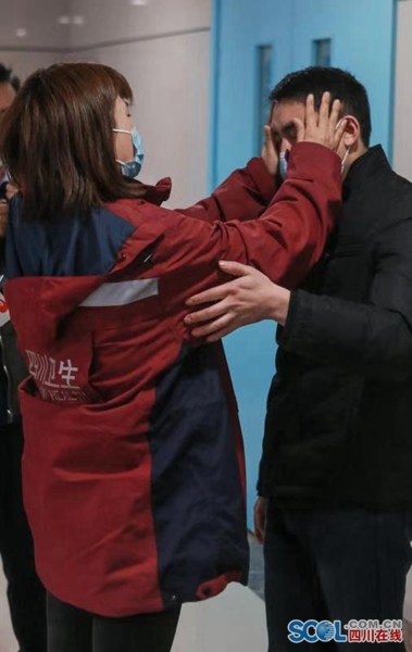 队员李琼华的丈夫庹玉平也是该医院药剂科的药师。出发前,夫妻紧紧拥抱在一起。“别哭了!照顾好爸妈和家里老人,我一定会保护自己,顺利完成任务,平安回来!”李琼华安慰着丈夫。