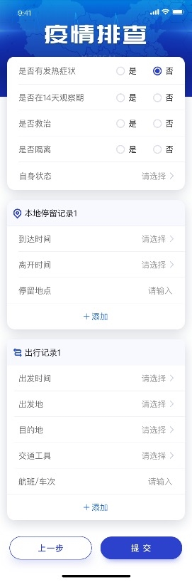 新冠肺炎自评测子系统依据国家卫生健康委员会最新版《新型冠状病毒感染的肺炎诊疗方案》设计在线量表,帮助个人自测感染新型冠状病毒的可能性,并且自我判断是否需要到医院诊治,避免到医院出现交叉感染风险。