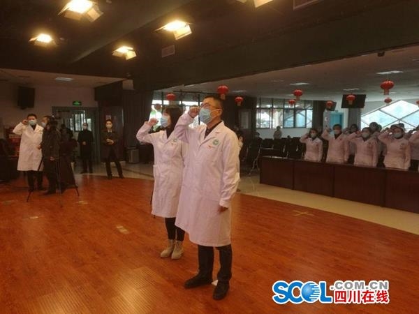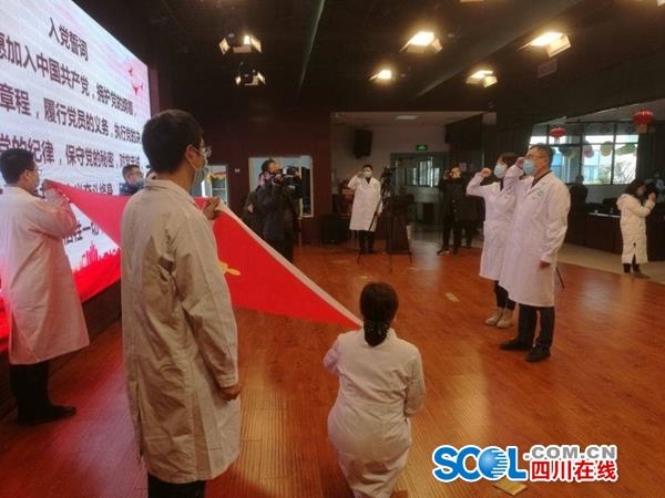 四川在线消息(记者 秦勇 文/图)“我志愿加入中国共产党,拥护党的纲领,遵守党的章程,履行党员义务,执行党的决定,严守党的纪律,保守党的秘密,对党忠诚,积极工作,为共产主义奋斗终身,随时准备为党和人民牺牲一切,永不叛党。”2月3日,自贡市富顺县人民医院四楼会议室,该院感染科医生郑洋在领誓人何其志的带领下,面对鲜红的党旗,举起右手,郑重宣誓入党。