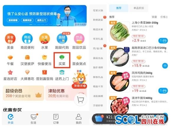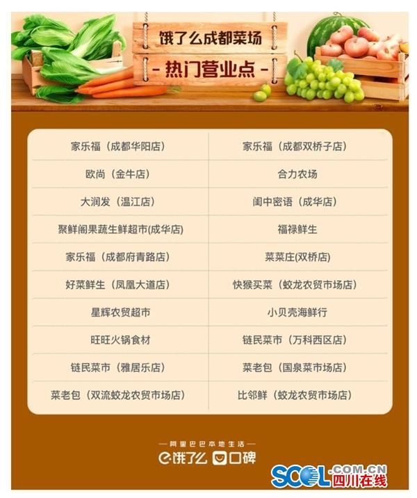 “非常时期,供给难免出现波动,我们会和生鲜菜店一起全力保证消费者需求。”饿了么成都新零售负责人表示。据了解,饿了么已联合优鲜菜场、菜文基、菜公社等生鲜商户,在全国38城保障买菜业务,满足疫情防控期消费者的食材供给,共计覆盖6万家门店。