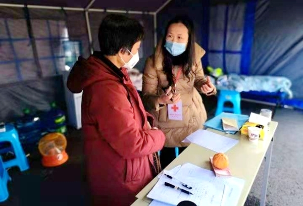 当这名婆婆来到卡点时,只是匆匆将钱放下,就准备离开。在旁人的劝说下,才决定稍坐片刻。随后,青白江区红十字会的工作人员赶到现场,婆婆郑重地将捐款交到了她们手上。