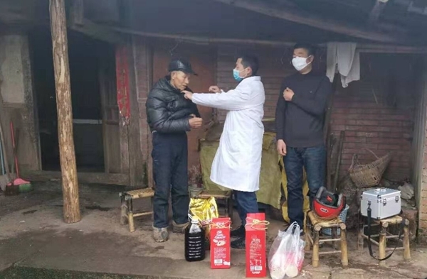 “全村只有两个村医,我和我的父亲。”王建康说,父亲67岁了,不能走远路,平日里都由父亲在卫生站坐诊,自己上门出诊。1月25日凌晨3点,王建康接到了“为排查出的居家隔离人员检测体温”的任务,从那天起,他便用脚步反复丈量全村6个社,完成一次检测任务,就需要四五个小时。每到一家,他都亲力亲为为相关人员量体温,了解与其接触人员情况,宣传防护知识,耐心做疏导工作。