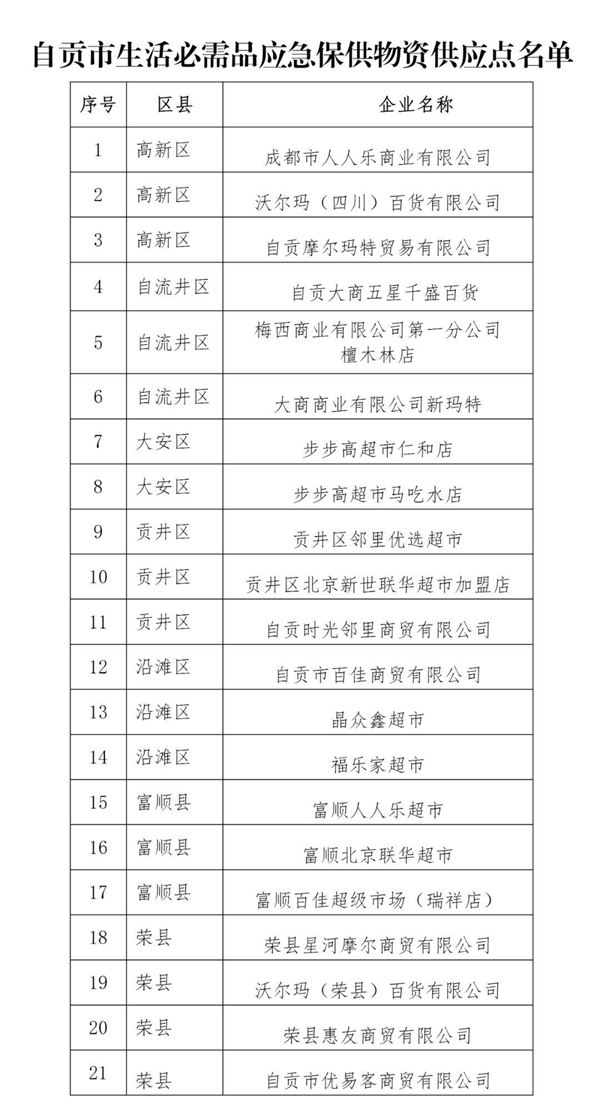 四川在线消息(记者 秦勇)2月4日,记者从自贡市商务局获悉,该市明确21个供应点为全市重点生活必需品应急保供点,保障疫情防控期间群众正常基本生活需要。