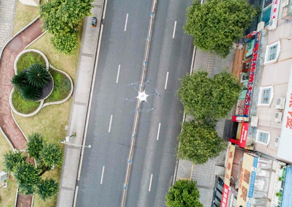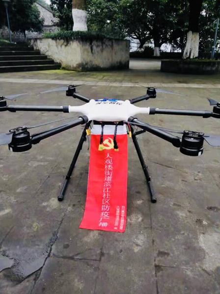 该区滨江社区党委书记张影告诉记者,4日开始,社区利用无人机开展针对9条街、66个小区及广场的广播宣传,“覆盖面广,避免宣传员在高楼层之间的穿梭、人员接触等,新颖的传播方式,让市民的接受度也高。”据悉,巡飞的无人机每次还可承载10升的消毒液,可对公共区域进行可视消毒,安全方便快捷。