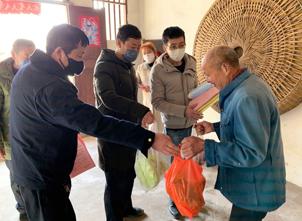 “老张,我们来测个体温,顺便给你带了点肉和菜来。这几天没出去嘛,不要随便出门哟……”2月4日一大早,长乐镇跳墩坝村帮扶干部杨军又来到了脱贫户张全友家中,开始开展防疫宣传等工作。