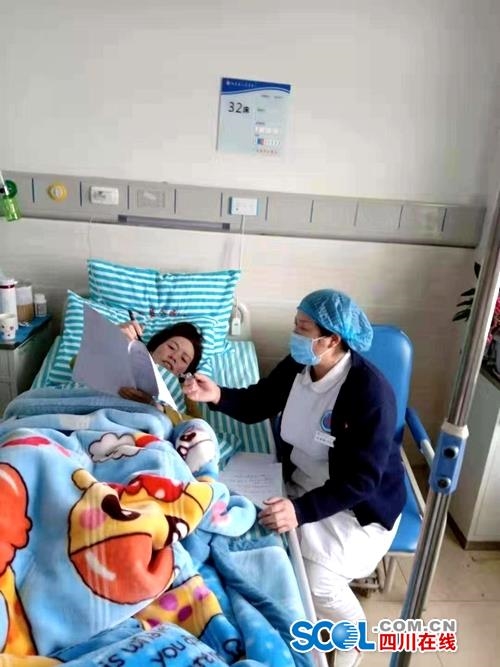 四川在线消息(陈俊松 记者 徐登林 文/图)“虽然我身子不能动,但我的脑子还可以用。”2月5日上午,病床上的吴天琼,还在给科室的同事安排工作,询问疫情发展状况,叮嘱护理人员要多加强对隔离病人的关心关爱。