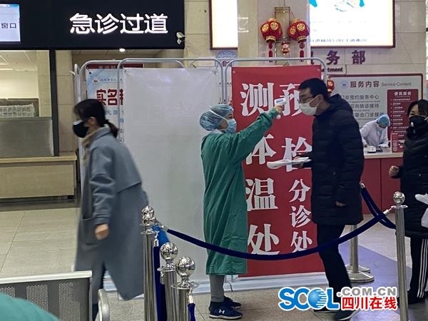 随后记者来到四川大学华西医院和四川省人民医院进行走访。作为我省新型冠状病毒感染肺炎省级医疗救治定点医院,均在门诊部门口设有体温测量点,通过体温测量后才能进入门诊大厅,而发热门诊和等待区都进行了独立设置。