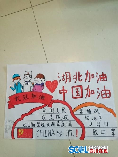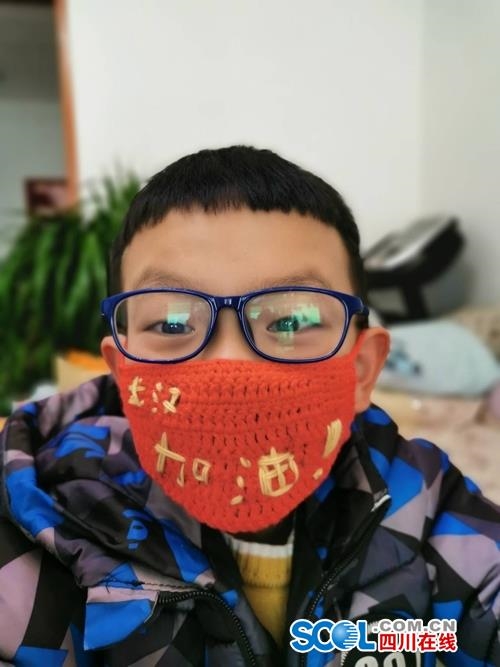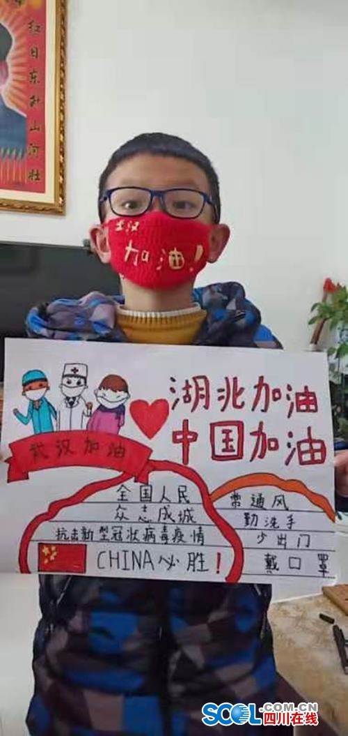 四川在线消息(陈静 记者 徐中成)2月5日,对于九寨沟县8岁小男孩金宇涵来说,是充满正能量和特别有意义的一天。当天,他和姑姑一起手工做了一个针织口罩和手抄报,为武汉加油打气。