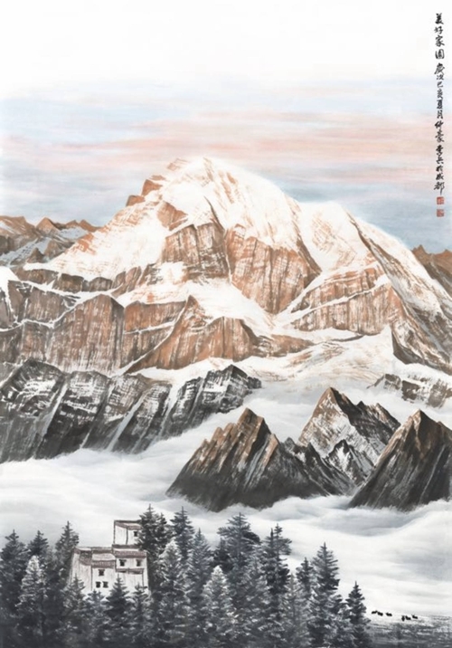 李兵,水墨高原雪山画体系的创立者,他探索出的中国画新皴法——“块斧劈皴”,亦称为“李兵冰雪皴”。独创的“挤白”“衬白”染雪法、冷暖对比烘雪法等,在中国山水画领域开创了新的境界。李兵的雪山画作品独树一帜,是继承传统和自主创新相结合的典范,是他从理论到实践对于中国写意画的独立思考,解决了中国画难以融合的黑白矛盾,为中国画表现高原雪山探索出一条新的技法。