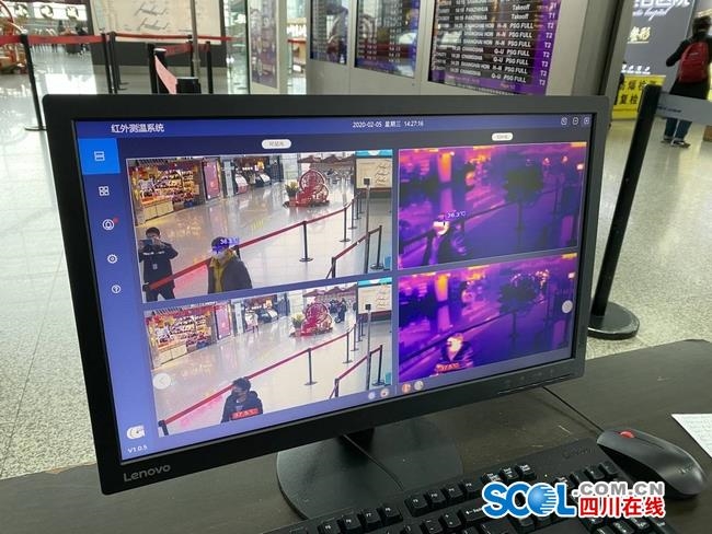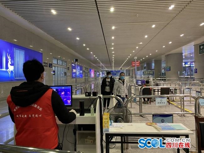 成都东站客运值班主任周艳介绍,为确保安全并提高效率,成都东站所有4个进口、4个出口都配备了红外体温检测仪。