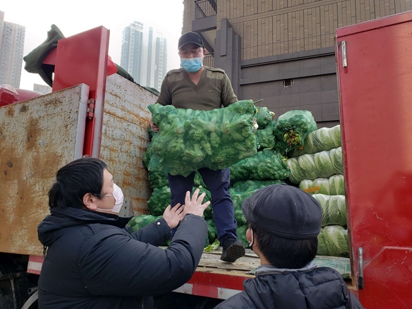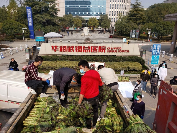 四川在线消息(朱远志 记者 徐登林 文/图)经过近20小时昼夜连续驱车,由四川省阿坝州汶川县三江镇村民自发捐款采购的7万公斤蔬菜已于2月5日上午10时许平安运抵武汉市武昌区,并在汶川运送人员和武汉当地接收部门及志愿者的共同协助下,已全部分发到武汉武钢医院、普仁医院等六家医院。