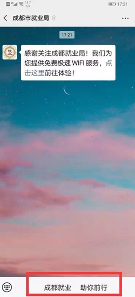 网络招聘活动通过成都市就业局微信公众号进入,欢迎各用人单位“网”上招聘选才,各求职人员“网”上就业选岗,足不出户实现就业、转岗、提升就业质量。望广大用人单位和求职者相互转告。