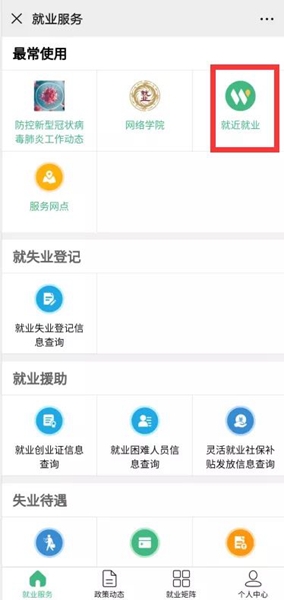 2.选择“成都就业 助你前行”,选择就近就业进入微就业招聘平台