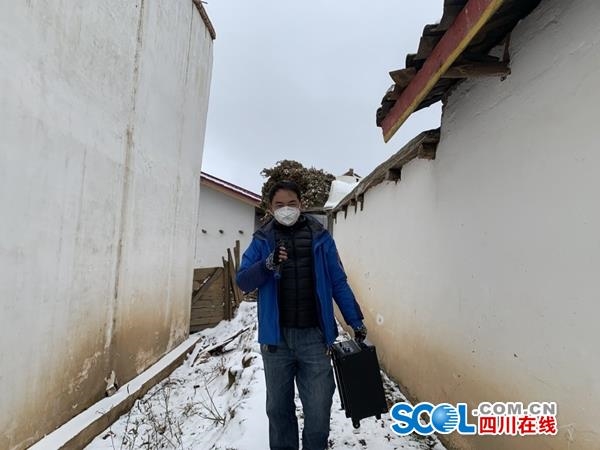 2月3日一早,赵里黑起床后往窗外一瞧,“山尖全白了,下雪了。”套上蓝色防风服,胡乱扒拉了几口早饭,赵里黑就和同事驱车赶往南瓦乡特尔村,开始一天的工作。他拿着移动喇叭,清了清嗓子:“三朋四友不聚餐,邻里之间不串门……”没走多久,赵里黑的脚就像冰一样冷。一直未来得及修剪的长发在冷风吹动下,耷拉在额头。