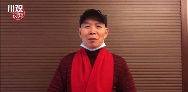 由川报观察、四川广电网络联手制作、推出的公益防疫小视频中,“巴蜀笑星”李伯清用四川话号召群众居家防疫。(薛剑 摄)
