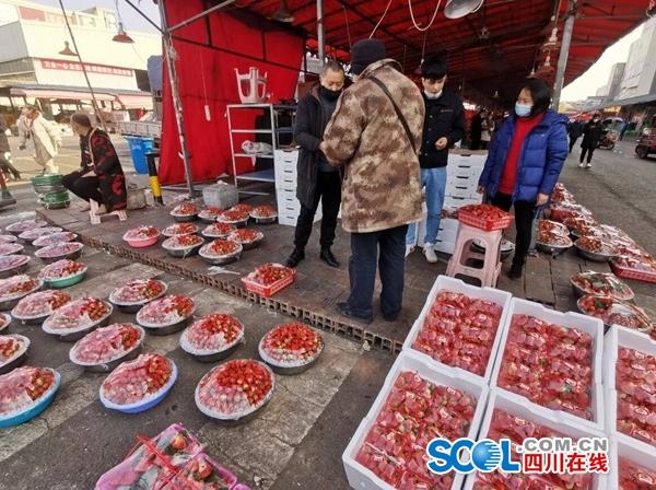四川在线消息(记者 王代强)“60块钱买不买?不买,就卖给这位美女咯!”经卖家这么一“激”,买家一把“夺”过一篮子草莓:“买了,买了!”这是2月6日上午,四川国际农产品交易中心(简称“交易中心”)水果交易区的一幕。