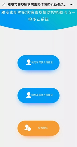 2月5日起,“雅安市新型冠状病毒疫情防控执勤卡点一检多认系统”在雨城区试运行,对所有进出雅安的车辆及驾乘人员进行信息登记,统一管理标准、简化工作流程,方便群众快速过检。