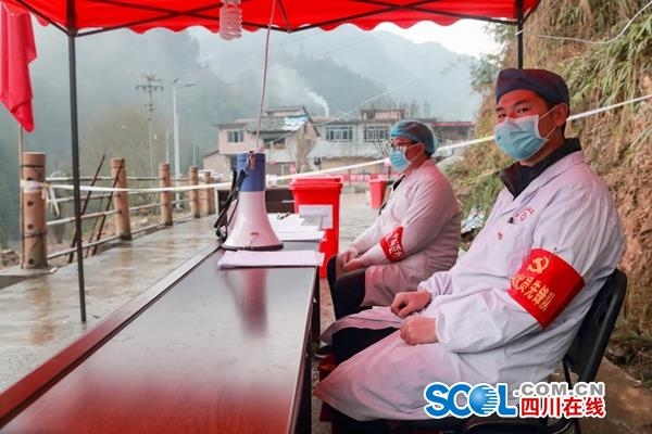 警戒线外,沿村道搭建了3顶四角棚、 1顶帐篷,设置有防疫消杀点、党员服务点、医疗监测点、心理辅导点。“我们有13名党员群众在此分班执守。”宝灵场检查站临时党支部书记高德辉说,执守人员包括县级联系部门、镇村组、网格部门、公安民警、卫生院的人员等,24小时监控监测居家隔离人员,随时解决他们生活生产需要。