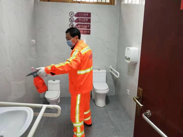 “我们每天打扫清洁过后,进行消毒,把手、按的水箱我们都进行了消毒,一天不低于4次。”环卫工人唐骏林介绍,“也希望每一个进入卫生间的人,要注意个人的卫生,一定要洗手,防止病毒传播。”