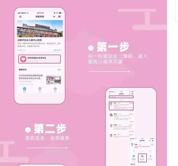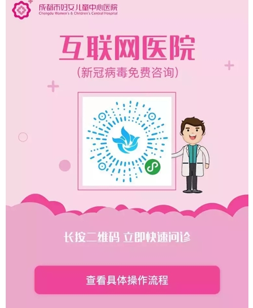 四川在线消息(记者 张庭铭)2月8日,记者从成都市卫生健康委员会获悉,为积极防控新型冠状病毒肺炎,尽可能减少交叉感染,正确引导广大孕产妇及小朋友们及时就医,成都市妇女儿童中心医院医院互联网医院已经全线开诊,共354名医生在线上免费进行新冠病毒肺炎及专科问诊咨询服务。