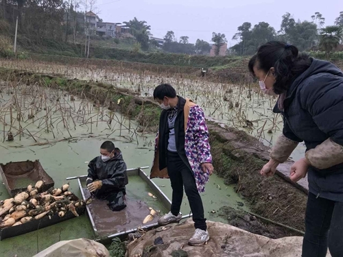 “现在不能赶场,我们没有办法上街卖莲藕,现在镇上和村上给我们考虑得很周到,在微信群给我们发出去了,现在要买的都在和我电话联系。”种藕大户孙锡国讲到。