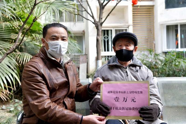 “作为一名老党员,不能做其他贡献,只能尽微薄之力,在党和国家处在困难的时候,我有义务起到一个党员应有的带头作用。”李庆彬老人说。他一直关注着疫情的发展,还几次追问女儿有没有组织捐款活动。就在中国铁路成都局集团公司离退部党委工作人员给他送来防疫用品和生活物资的时候,老人提出了要上缴一笔特殊党费。