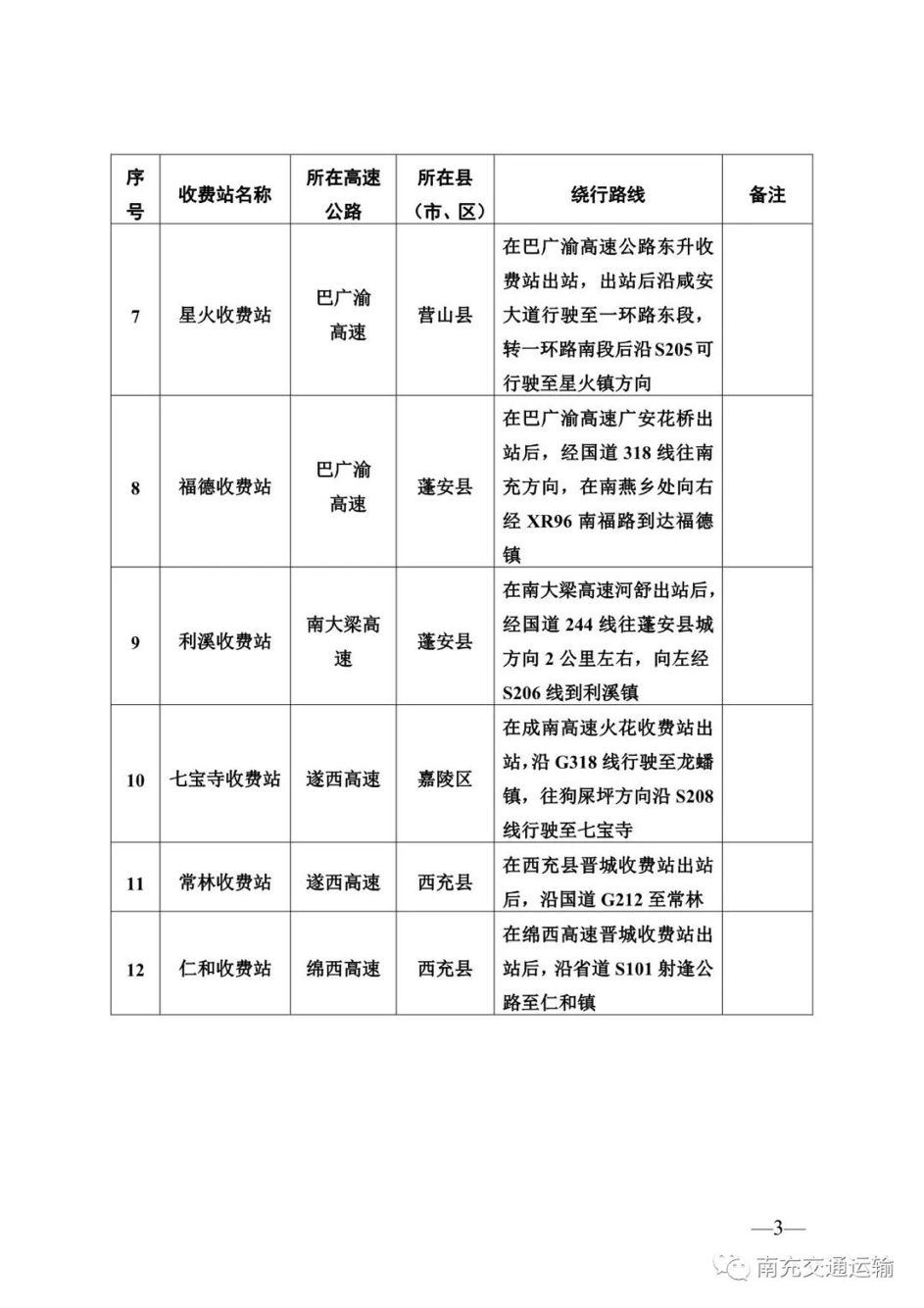 此外,南充市交通运输局也在官网就南充部分高速公路收费站临时关闭后绕行线路方案进行了公告。