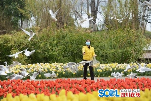 四川在线消息(记者 王云)晨曦中,李阳像往常一样拎着装好海鸥食料的投食桶,按时出现在月色小镇的投食点的时候,早已等候在此的海鸥们扑腾着翅膀,尖叫着围着李阳飞翔,它们知道,等待已久的盛宴开始了。