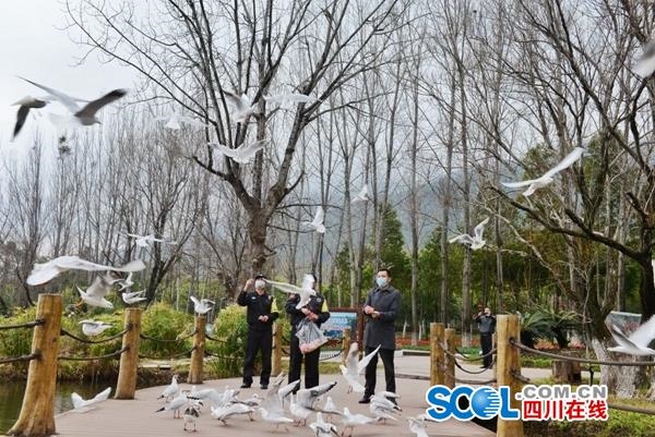 据了解,邛泸景区管理局对来邛海湖域越冬海鸥(主要是红嘴鸥)的保护工作,自去年12月份开始便不断加大对其日常监测工作,包括对其种群数量、分布、行为活动等方面的监测。同时,采购了昆明昆华科技有限公司配制的专门海鸥食物,根据海鸥觅食需求的变化适量进行食物补充,以保障海鸥在邛海顺利越冬。