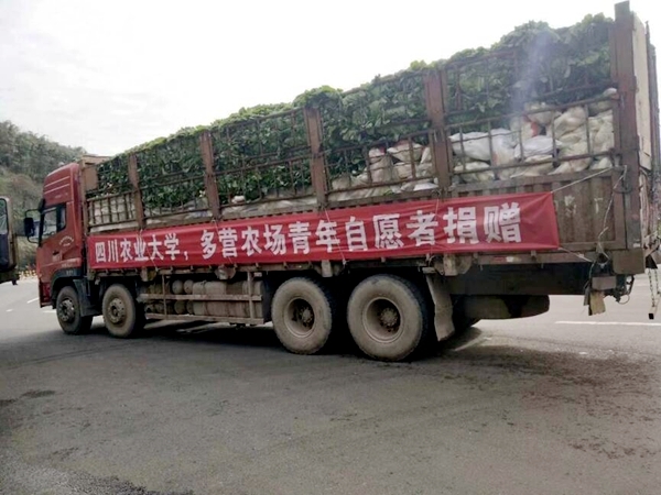四川农业大学玉米所位于雅安多营的农场有150亩,是玉米种植研究基地。此次捐赠的新鲜蔬菜,是利用玉米基地冬季短暂空闲和解决地力养护需要而种植的青菜和萝卜等。新型冠状病毒肺炎疫情爆发,牵动着学校每一位师生员工的心,农场管理工人杨远超得知抗疫前线需要蔬菜的信息后,萌发了捐赠蔬菜的想法,他积极联系,雅安青年志愿者、附近村民也不计酬劳,热情参与其中,大家冒着严寒,仅8日一天就采摘近60吨蔬菜,志愿者还联系到货车司机,欣然应允免费运输,于9日上午前顺利完成了分捡与装载。杨远超说:“比起前线冒着生命危险的医护人员,我们只能从后方提供一些需要的蔬菜。这是自己应该做的事。”