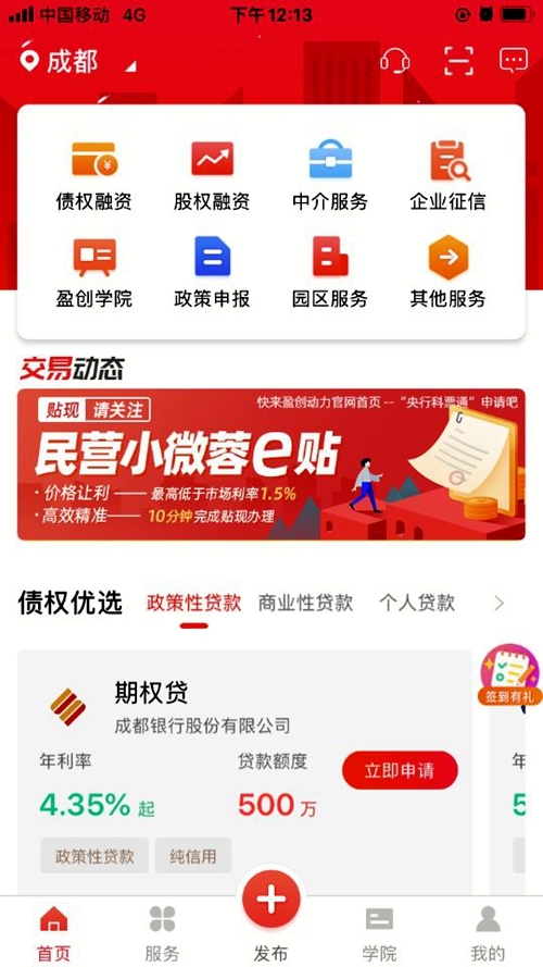 2月11日,记者成都成都高新区获悉,在当前疫情防控关键时期,成都高新区不断提升盈创动力科技金融服务平台各项在线业务申报和审批能力,迅速开辟政策性信贷产品线上绿色申报通道,在线为企业提供“成长贷”“园保贷”“壮大贷”“新创贷”等多款政策性产品服务,首次运用“盈创之星”融资信用平台大数据融资征信报告评价方式替代传统线下专家评议会,形成融资企业、科技金融平台、金融机构、政府机关四方协同联动,实现线上信贷申请、接件、初审、大数据评价等“一站式”全流程线上服务,为中小微企业保驾护航。