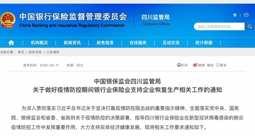 2月11日,四川银保监局发布《关于做好疫情防控期间银行业保险业支持企业恢复生产相关工作的通知》(下称《通知》),以12条有力举措,为疫情防控期间我省实体经济健康发展提供金融保障。