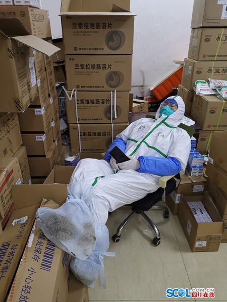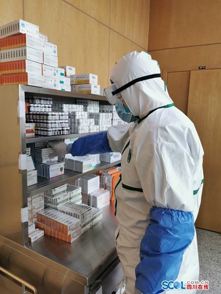 不到中午12点,苏玓提前更换好防护服,戴好护目镜和N95口罩。“早点到,好跟同事做交接,了解一下今天新进的药物。”除了治疗新冠肺炎的药物之外,还有一些治疗患者基础疾病的药物。药房里密密麻麻摆放着200多种药物,而且还不断地根据患者的病情需要增减。“我们要为所有药物在脑海里画好地图,一旦需要,迅速锁定位置。”苏玓坦言,记清楚200多种药品的摆放位置,是一件不容易的事情。