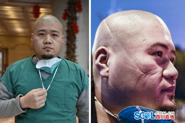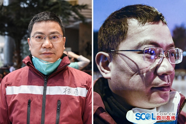 杨勇(上)和苏玓(下)进出方舱后的对比图