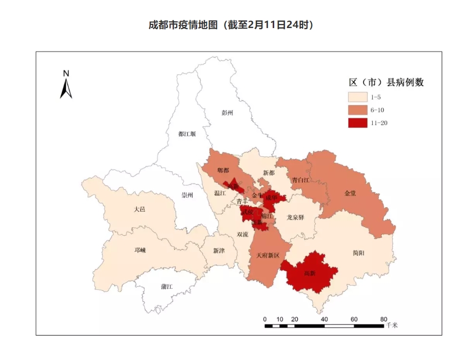 为加强社区防控,常住成都病例按照现住址、外地来蓉病例按照暂住地址划分,累计确诊病例分布于18个区(市)县: