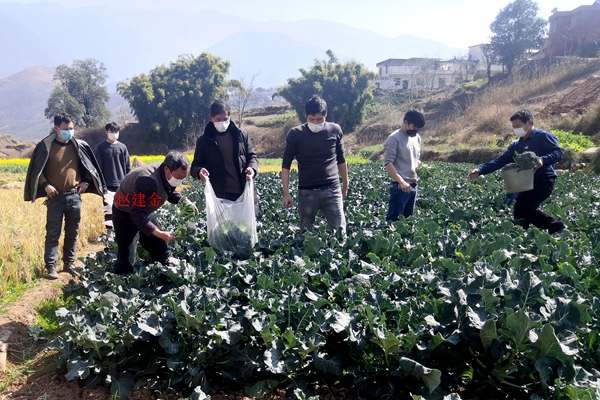 村民们听说赵建金捐蔬菜,都赶来帮忙。他们戴着口罩,动作利索的在赵建金家的西兰花地里采摘着。自疫情防控工作开展以来,这样的热闹场景已经很久不曾出现过了。