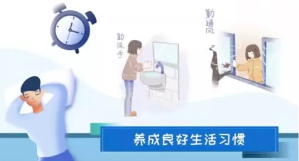 1.养成健康生活习惯,提高身体抵抗力。疫情期间合理安排饮食、按时吃饭、不暴饮暴食,适量运动、不久坐、不久站、不久躺,规律作息、保证充足睡眠,戒烟限酒,保持心情舒畅、避免不必要的恐慌与焦虑。
