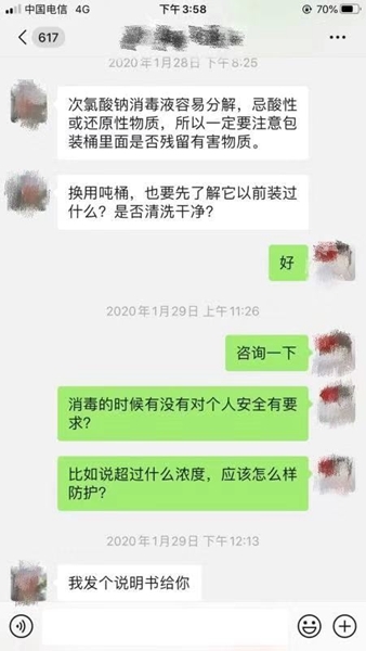 王薇与消毒液厂家联系