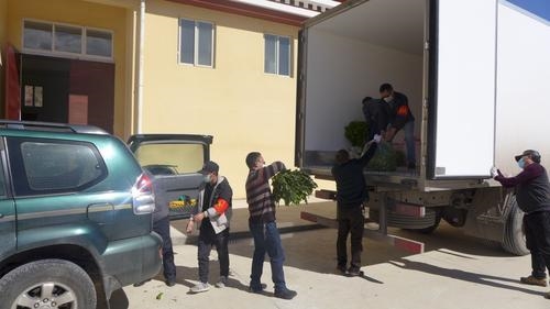 在蔡金勇通话的时候,在道孚县粮油物资储备中心,县经信局的职工正在往一辆厢式货车上搬运大米、面粉、挂面和食用油。而在相距一公里的道孚县高原特色农业示范园,县发改局的职工正在装运蔬菜。