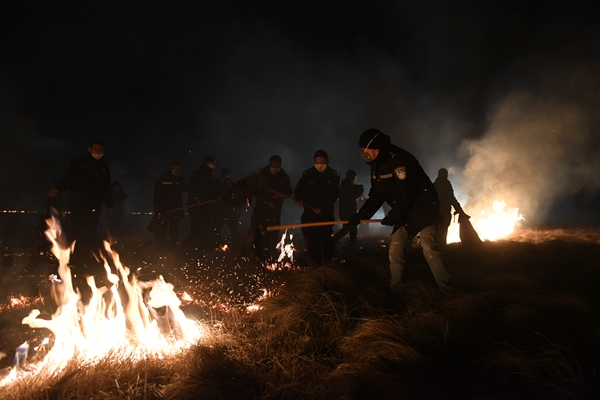 接到报告后,阿坝州及红原县迅速组织5辆消防车,60套专业灭火器具赶赴火情现场,动员60余名公安干警、180余名武警官兵、200余名当地群众、200余名瓦切镇及邛溪镇、阿木乡、麦洼乡等邻近乡镇的民兵和60余名林业草原局、应急管理局、科技农牧局的干部职工,全力投入灭火工作。当晚,阿坝州消防支队还调遣了40名松潘县专业消防队员参与灭火工作。