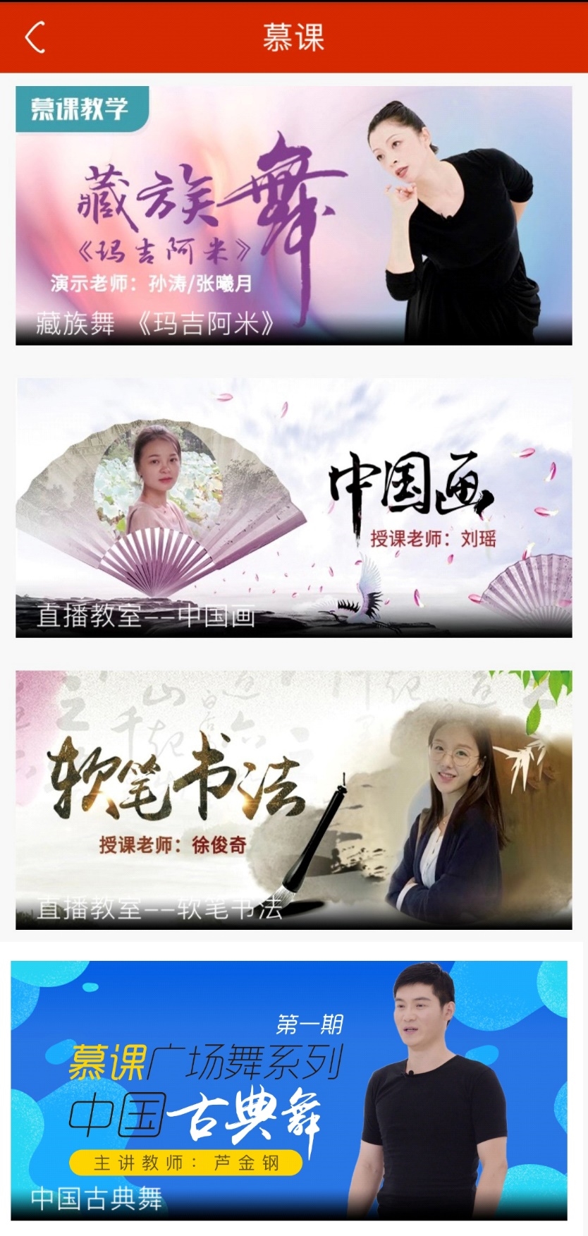 为带给市民更好的线上课程体验,成都市文化馆对“文化天府”平台“慕课教学”栏目进行了优化,使学习界面更美观、操作更便捷,课程类别更丰富。市民可下载登录“文化天府”APP ,在首页点击“慕课教学”选择喜欢的课程开始学习,也可以关注“文化天府”微信公众号,在首页右下角“文化天府”点击“慕课教学”选择报名课程开始学习。