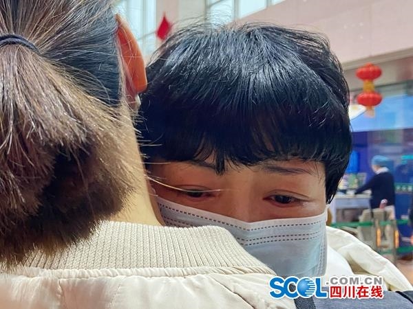 泸州支援湖北的医疗救援队队员李玉娟已整装待发,同事前来送行。刚见面,便一把抱住了李玉娟,没忍住眼泪。嘴里还不忘叮嘱,要做好防护,要健康回来。郭慧琳摄