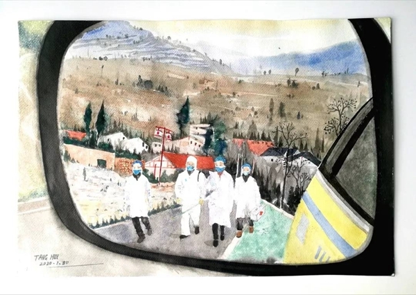 此外,依托成都画院众多的画家创作资源,“艺笔抗疫·共克时艰——成都画院艺术家主题创作网络展”也在微信号上“抢鲜”推出,成都艺术家们新创作的抗疫题材作品第一时间进入观众视野。展出的作品包含中国画、油画、水彩、宣传画、漫画等多种艺术形式。诙谐有趣的《抗击病毒,非我莫鼠》、温情满满的《爸爸 等您回家》、紧张有序的《雷神山施工写生》等作品,在凸显了画家们发挥美术作品文艺轻骑兵作用的同时,更表达出他们以手中的画笔讴歌真英雄,为抗击疫情贡献力量的热情。