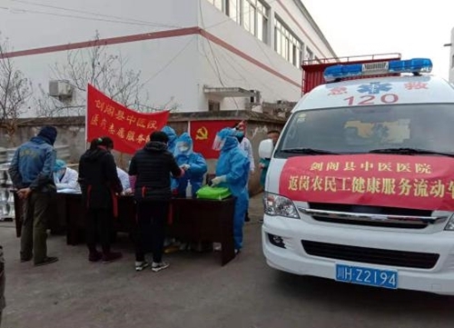 四川在线消息(乐虹辰 记者 燕巧 文/图)如何防止因返岗复工人员流动聚集造成疫情扩散?剑阁县各级医院成立返岗复工人员疫情监测队,组织医务人员上门到企业开展大排查和疫情监测,为员工提供免费健康服务。