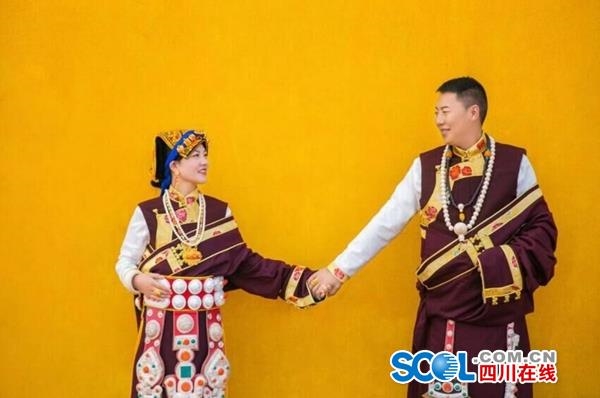 松潘县镇江关卫生院院长刘宇和爱人拍摄的婚纱照。