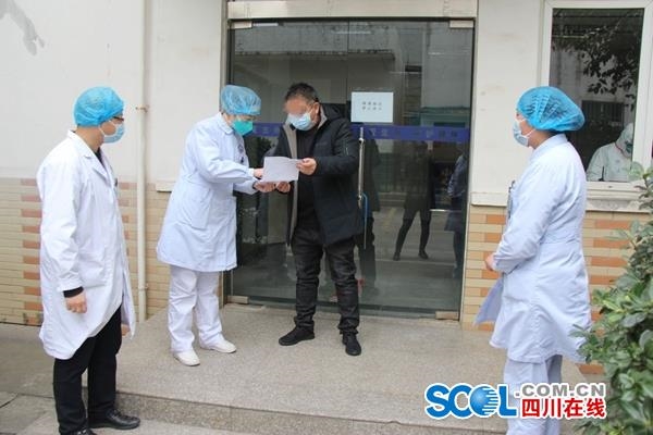 四川在线消息(李冬 记者 燕巧)2月14日下午,广元市第二例新冠肺炎确诊患者治愈出院。下午5时,治愈患者侯某走出广元市第三人民医院隔离病区。