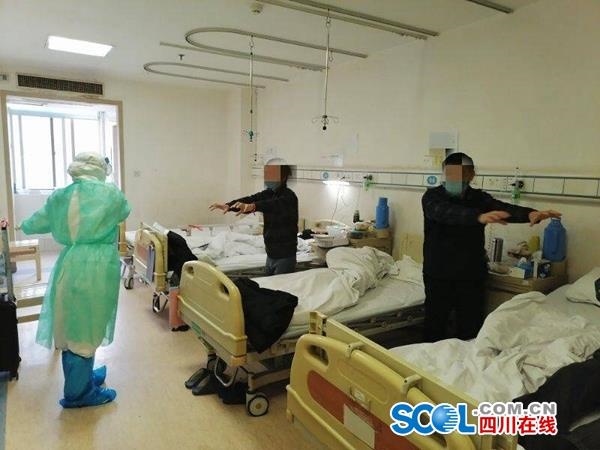 “虎爪,握拳,往上,再慢慢下来……”在武汉市红十字会医院10楼病房,一名新冠肺炎患者半坐在病床上活动上半身,练习起了“五禽戏”。病床旁,成都中医药大学附属医院重症医学科护士、我省援助湖北医疗队队员张思琪进行动作示范引导。