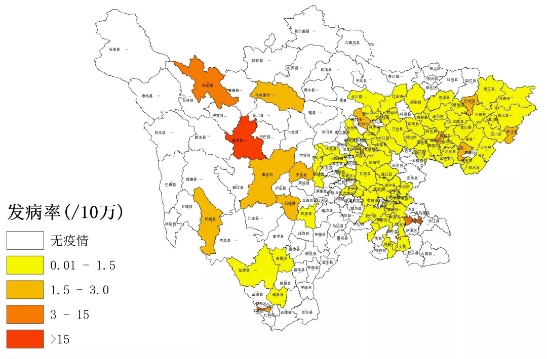 四川省新冠肺炎累计确诊病例报告发病率县(市、区)地理信息图