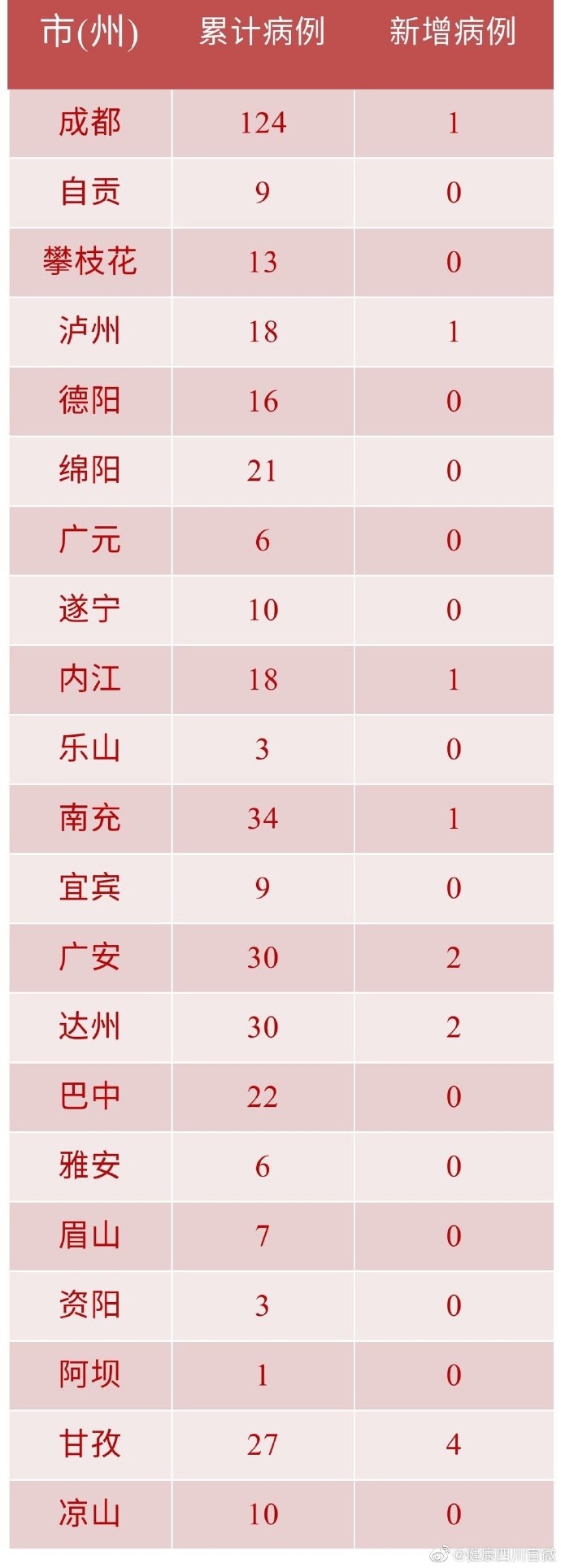 新增确诊病例中,甘孜州6例、遂宁市2例、凉山州2例、成都市1例。