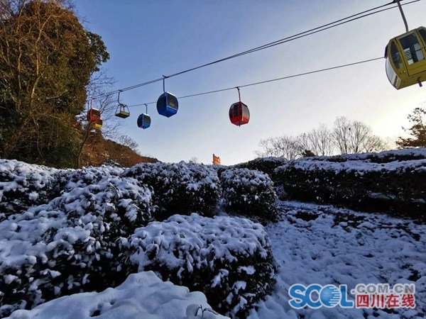 2月16日清晨,索道沿线、红梅长廊还有满山茶园都落满了雪,仿若银装素裹的冰雪童话世界。